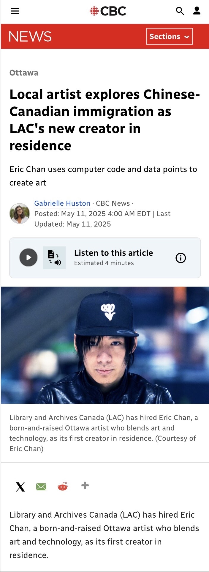 CBC Ottawa Interview May 2025 I was interviewed on CBC Ottawa on my Creator in Residence at Library and Archives Canada.