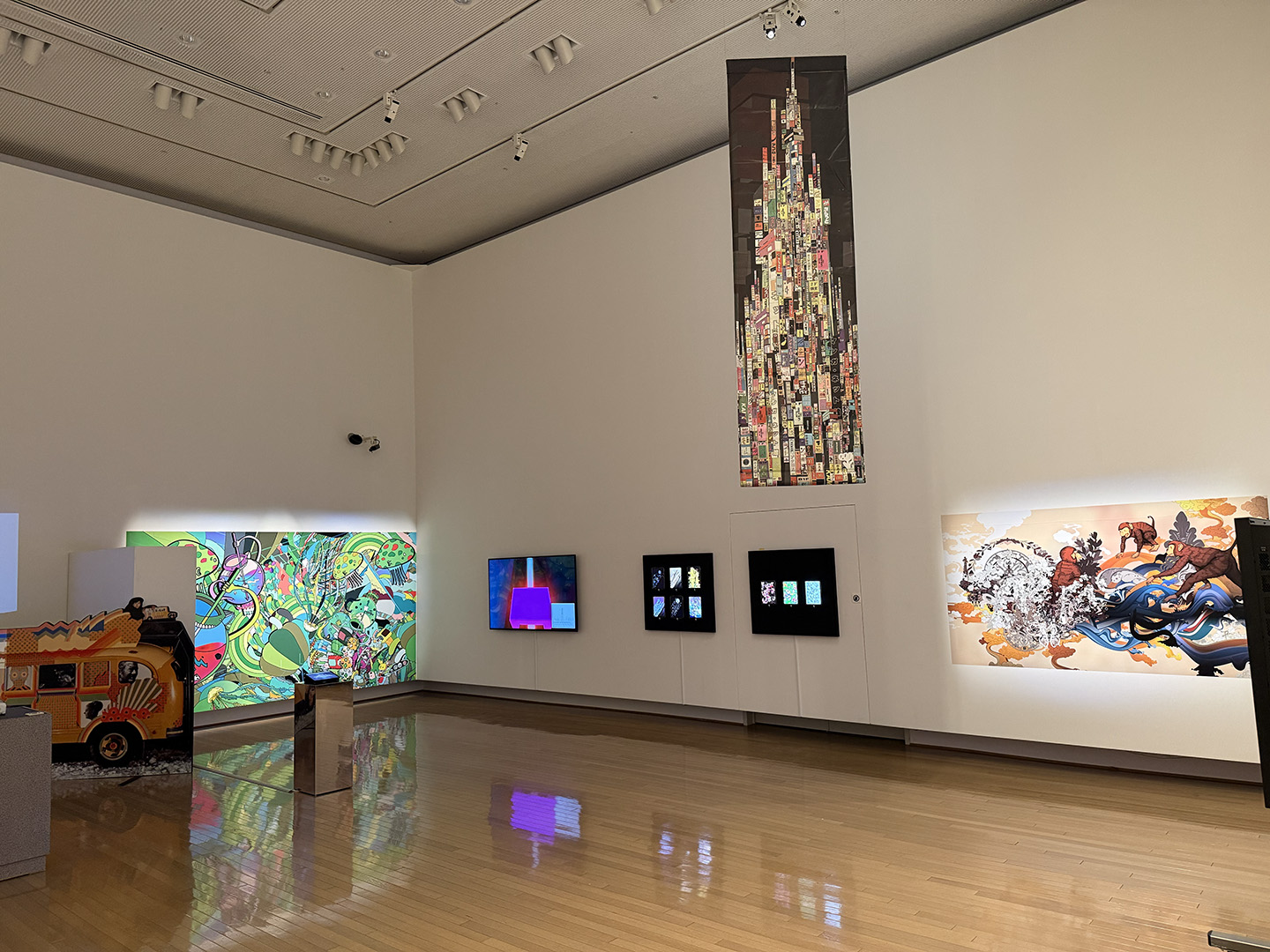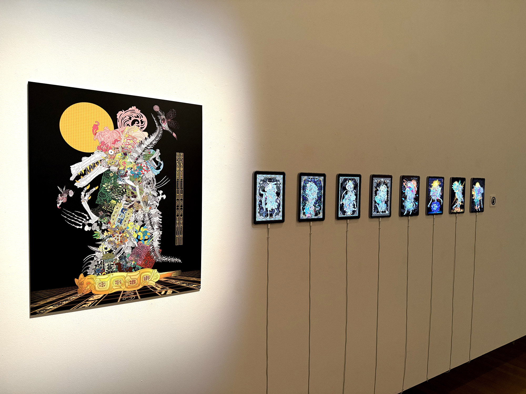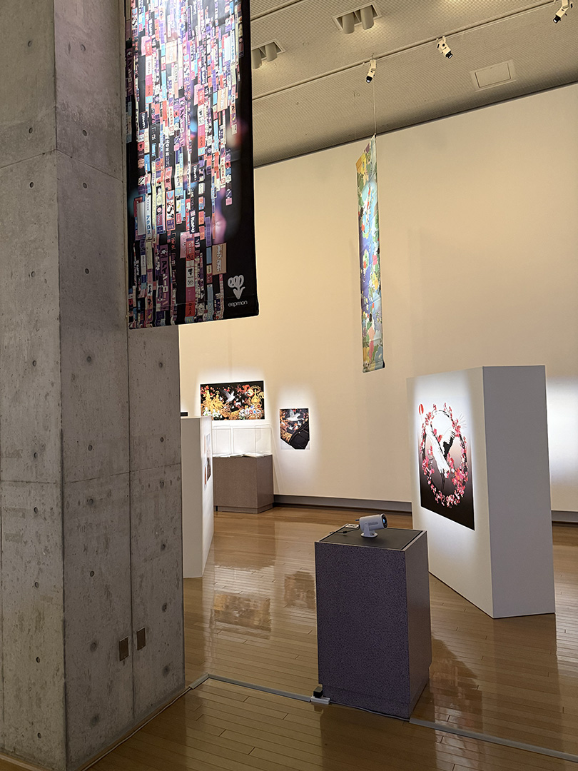 EEPMONの作品は、デジタルプロジェクションやスクリーンを使った作品から、大規模な壁画やNFT(非代替性トークン)まで多岐にわたります。これらの空間に足を踏み入れると、彼がデジタルワールドの住人として生み出したテクノロジーとイマジネーションの境界を曖昧にする様々な架空のキャラクターたちに出会うことができます。