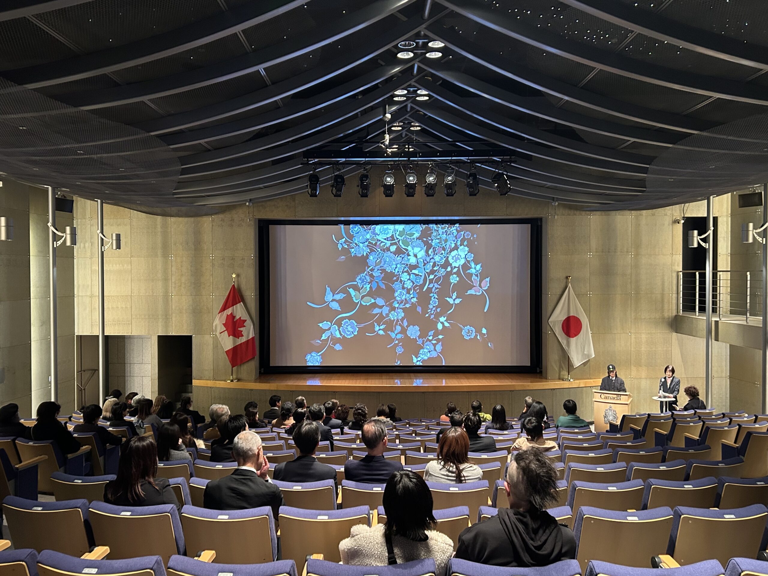 The Oscar Peterson Theatre in the Embassy of Canada to Japan is a remarkable and iconic venue. Directly adjacent to the Prince Takamado Gallery, the Embassy and I presented our opening remarks to officially launch my exhibition titled, Digital Worlds: The Generative Art of EEPMON. A thank you to the Embassy’s IT team for the seamless programming.